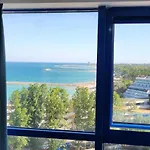 Aphrodite Olimp - Luxury Apartment With Sea View & Pool lägenhet erbjuder ett komplett kök samt rum med soffa, arbetsbord och plattskärms-TV med satellitkanaler. Lägenheten ligger cirka 900 meter från Olimp Beach och 15 minuters bilresa från Mangalia Stud Farm.